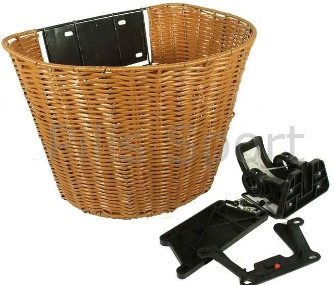 Rattan hatású fonott kosár kormányra, leszedhető. Gyári adapterrel rögzítve a kormányra.